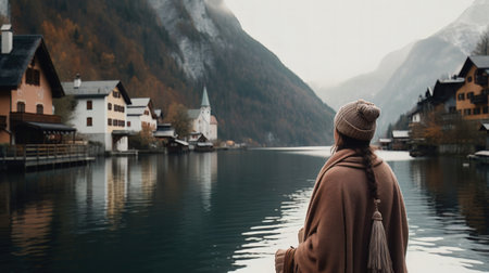 Beautiful old town surrounded by mountains view. Generative AI