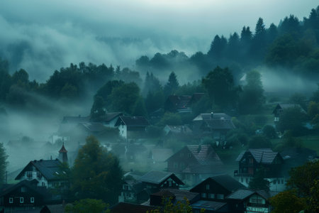 The gentle sound of fog settling over a quiet town --ar 3:2 Job ID: eca1e000-e05a-4003-b7b8-4683a05d56fd