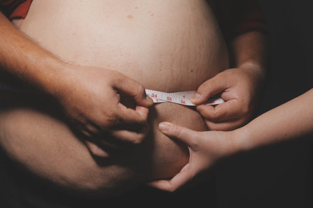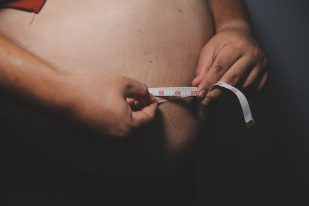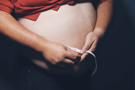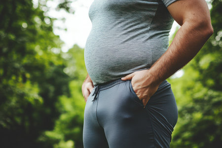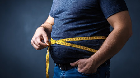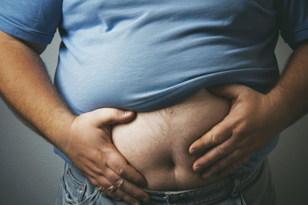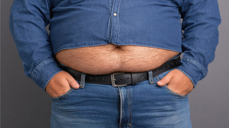 Close-up of an adult man's belly with visible excess fat, symbolizing health risks, fitness goals, and weight loss motivation.