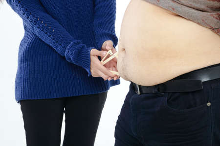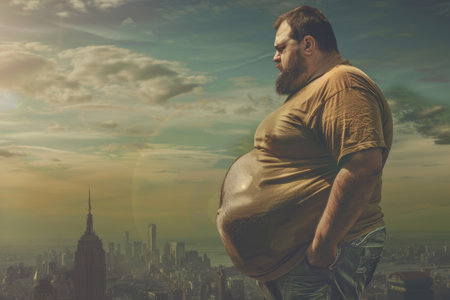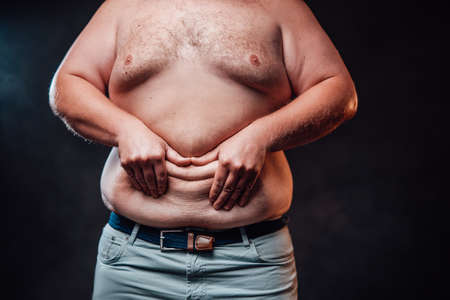 man with excessive belly fat, overweight concept