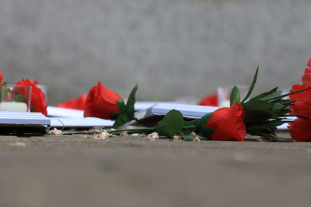 Red roses and candles on the grave of the Unknown Soldier in Kiev, Ukraine.