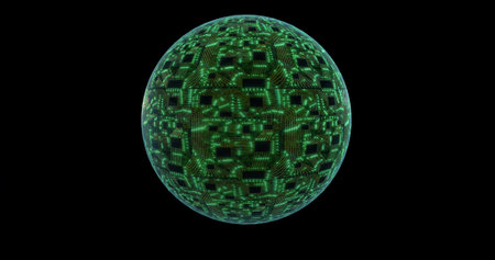 3D digital concept, sphere planet with circuit board and cpu. Digital neural network. CPU power ripple 3D rendering, 3D illustration