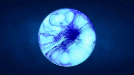 Soft glowing sphere with misty layers of blue and green light in deep space.