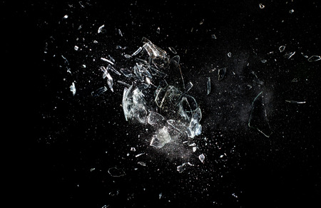 Broken glass photographed in the studio with black background,