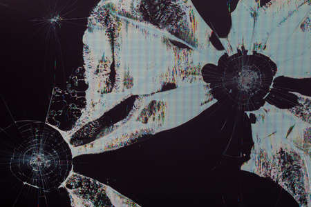 broken lcd tft tn screen flat macro texture with crystal leakage and physical damage cracks