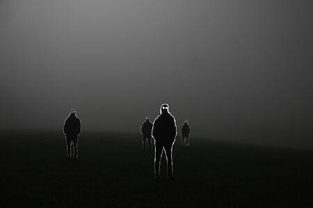 silhouette of a man standing in the foggy road. mist