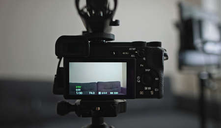 Detail image of Cinema Camera on Film Set, Behind the scenes background, film crew production