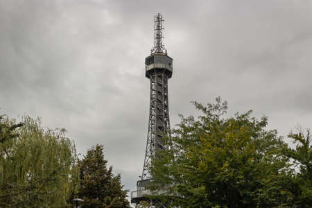 Petrin hill in Prague: architecture details of buildings inside the gardens. The tower