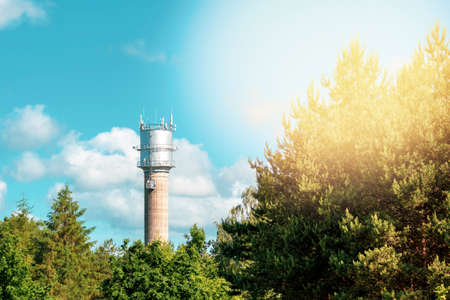 Ronnede. Denmark. July 27th. 2019 Camp Adventure Tower. Observation tower in the forest. View from below. Sightseeing. Travel. Tourism Architecture