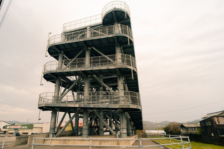 Special-purpose tsunami vertical evacuation structure in shikoku Japan. High quality photo