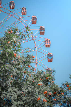 Ferris wheel in the city park sunny summer day