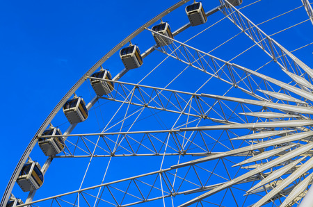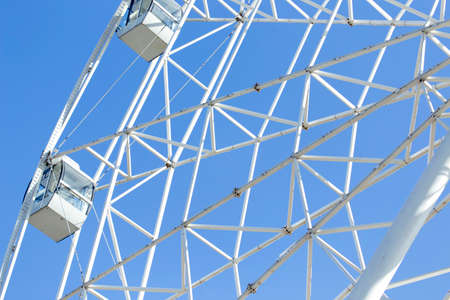 White ferris wheel against a blue sky. Stock image.