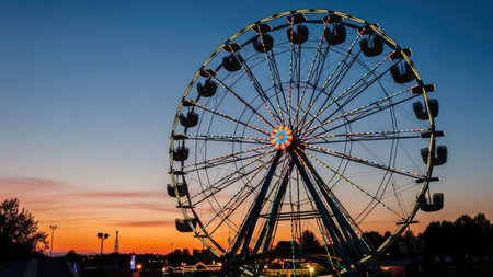 Ferris wheel at sunset. Amusement park in the evening.