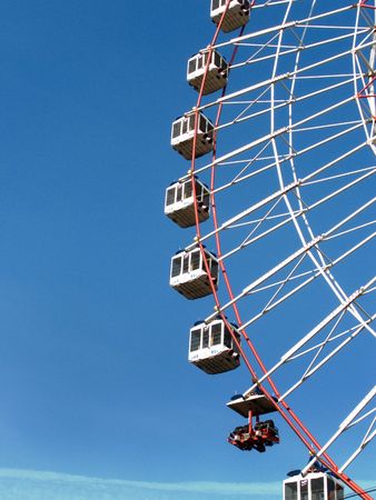 Ferris wheel against the blue sky.