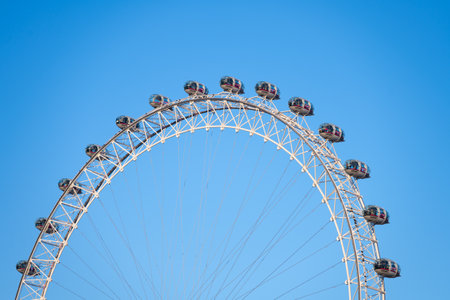 Detail view of Ferris wheel against blue sky