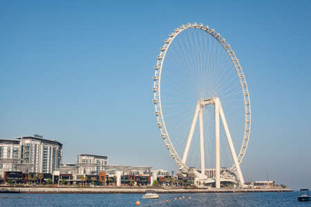 Dubai, UAE, December 2020: View of the Dubai Eye Ferris Wheel on the Island of Blue Waters