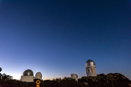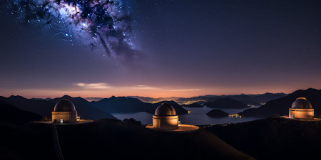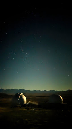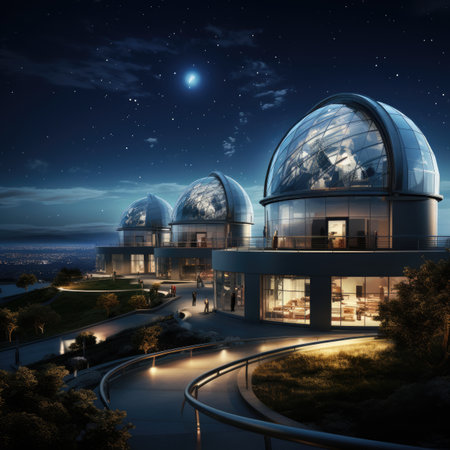 telescopes and domes of observatory in the night sky, with stars shining, created with generative ai