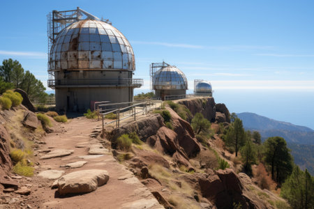 view of modern observatory with its sleek and minimalist design, surrounded by natural beauty, created with generative ai