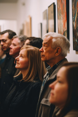 Visitors engaging with art in a vibrant gallery setting, appreciating creative masterpieces