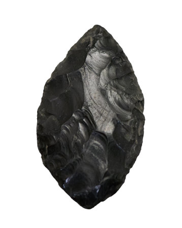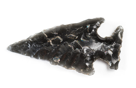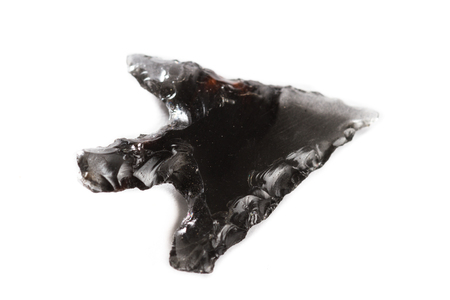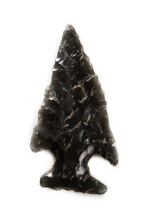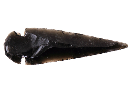 A smooth, chisiled, Native American Indian arrowhead isolated on white.