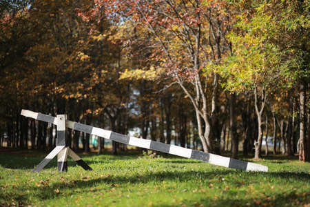 obstacle course consisting of different projectiles on the ground for dog training. high quality photo