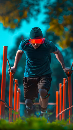 Athlete with cerebral palsy completing an obstacle course, overcoming barriers with every step