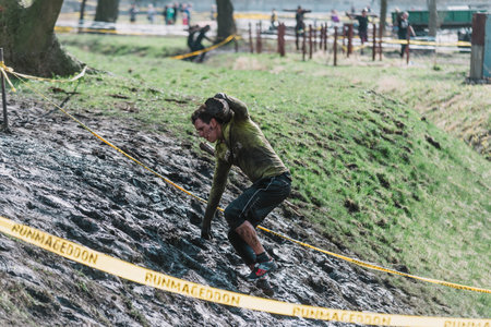 WROCLAW, POLAND - APRIL 8; 2018: Runmageddon - extreme competition in running with many obstacles