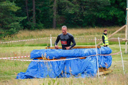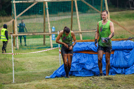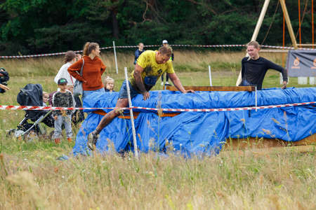 City Plavinas, Latvia. Run race, people were engaged in sports activities. Overcoming various obstacles and running.18.07.2020