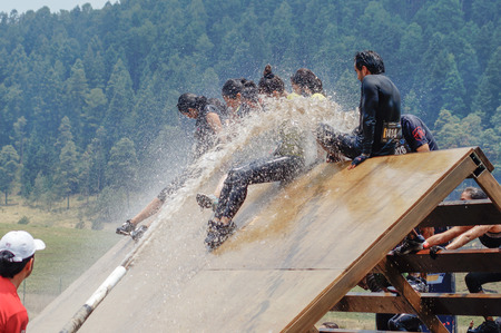 LIMA, PERU - OCTOBER 23, 2016: Inka Challenge, an extreme obstacle course where 1500 athletes from different countries managed to cross the finish line at Santa Maria beach.