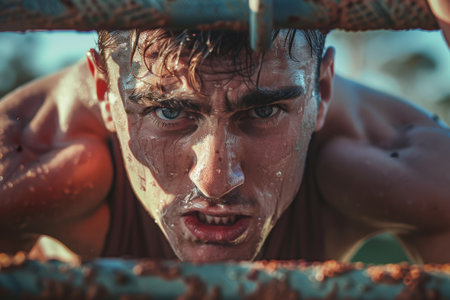 passion and dedication of athletes in a competitive sporting event, capturing a powerful image of their determination and physical prowess