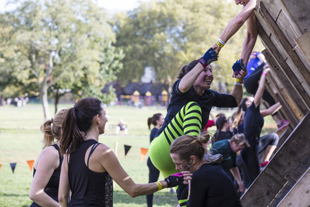 LONDON, UK - September 13th 2018: Participants take part in a Tough Mudder 5K obstacle race in London.