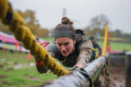 Intense crossfit competition in challenging obstacles, generative AI