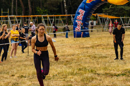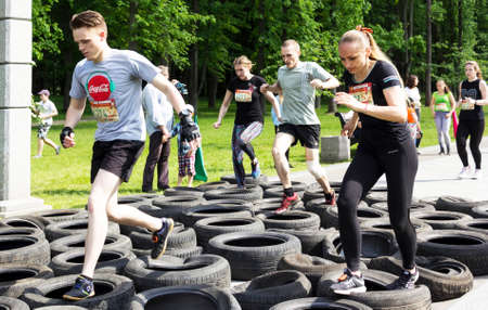 City Riga, Latvia. Run race, people were engaged in sports activities. Overcoming various obstacles and running. 5.07.2020