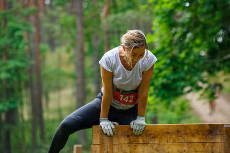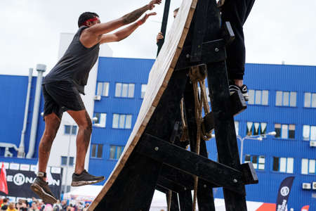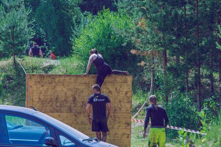 City Plavinas, Latvia. Run race, people were engaged in sports activities. Overcoming various obstacles and running.18.07.2020