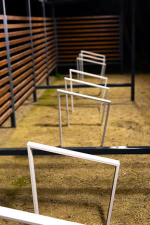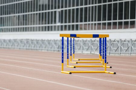 Hurdles on the tracks at the athletics stadium