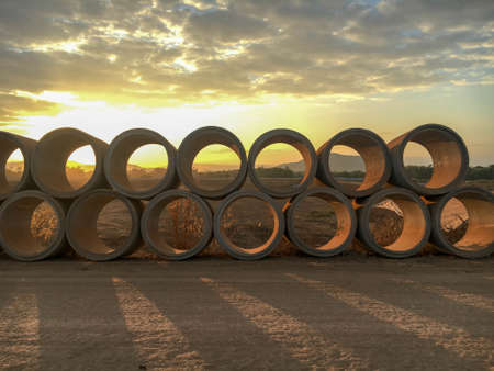 Concrete drainage pipe stacked on contruction site