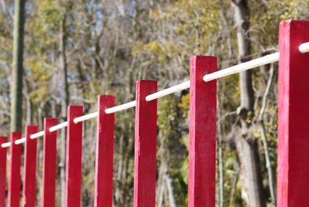 limited ban tape red and white color around sport playground area outside space unfocused background