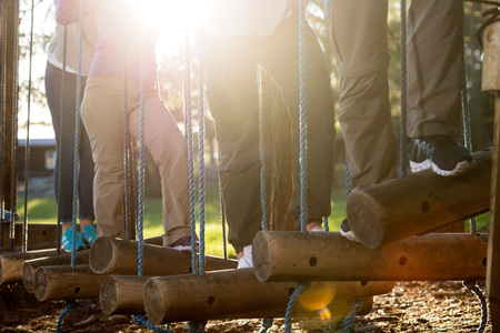 Bridge at the rope park in a forest. Adventure summer park.