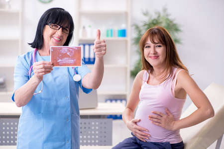 Young pregnant woman visiting experienced doctor gynecologist