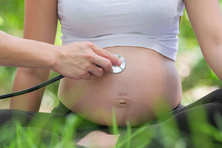 Doctor listen tummy of pregnant woman