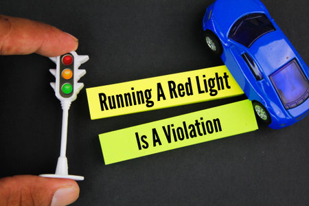 cars, traffic lights and colored paper with the words Running a red light is a violation. driving fault
