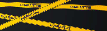 Epidemic coronavirus quarantine caution on yellow warning tape and pandemic health risk design flat vector illustration.