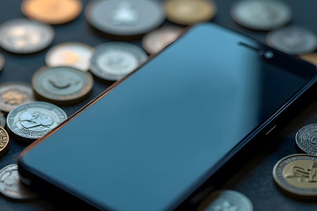 Bitcoin crypto currency in smartphone. Red market.