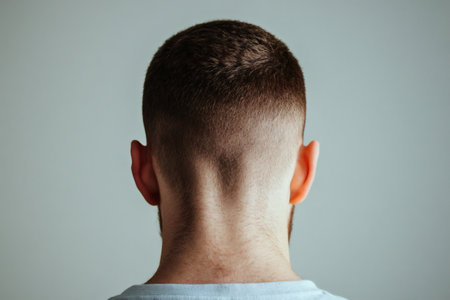 Young man displaying a fresh skin fade haircut from the back, highlighting clean lines, nape detail and modern barber styling