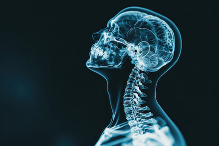 X-ray view of human cervical spine with vivid contrast highlighting structures and shadows