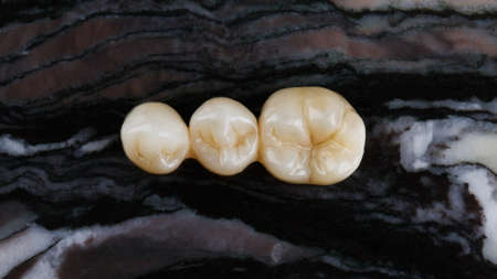 bases for dental crowns of chewing bridges, top view on a black background