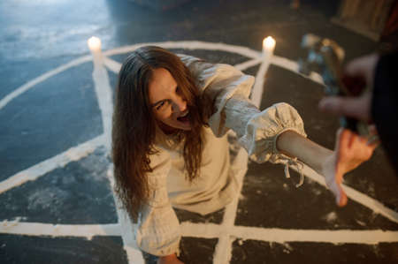 Sinister ritual of Satan worship. Halloween concept. Black magic.