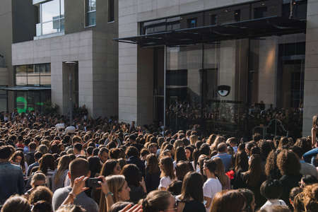Milan, Italy - September 23, 2018: Celebrieties, press and ordinaty people outside a fashion show during Milan Fashion Week.