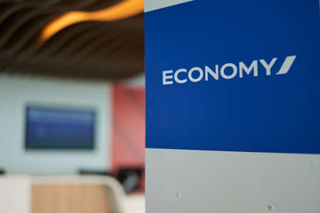 Paris Airport - Circa July 2019: Economy class sign on a check-in in airport terminal