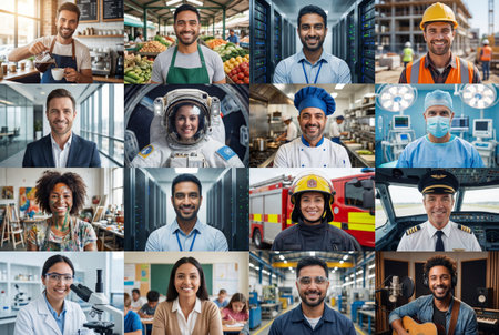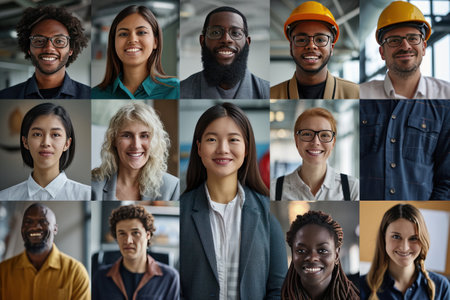 A collection of sixteen diverse smiling professionals from various occupations and industries are featured in a bright, clean collage.